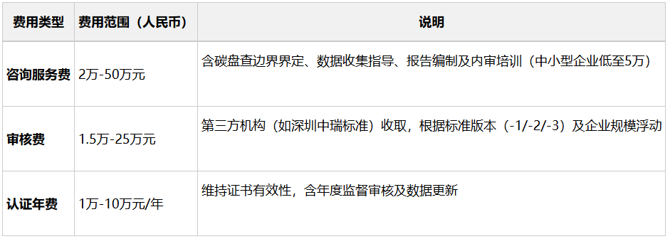 大型集团企业(范围1 2 3):基础费25万 审核费10万 检测费2万 ≈ 37万元
