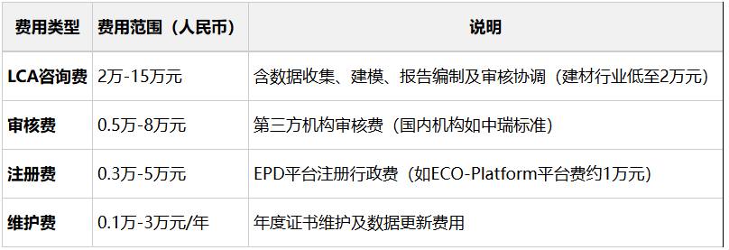 EPD费用由基础服务、认证机构收费及附加成本构成,具体因产品类型、认证体系、数据复杂度差异显著: