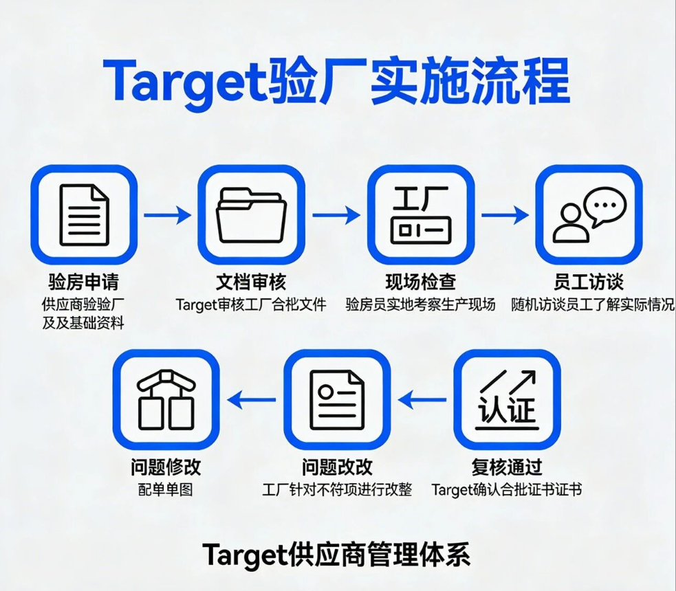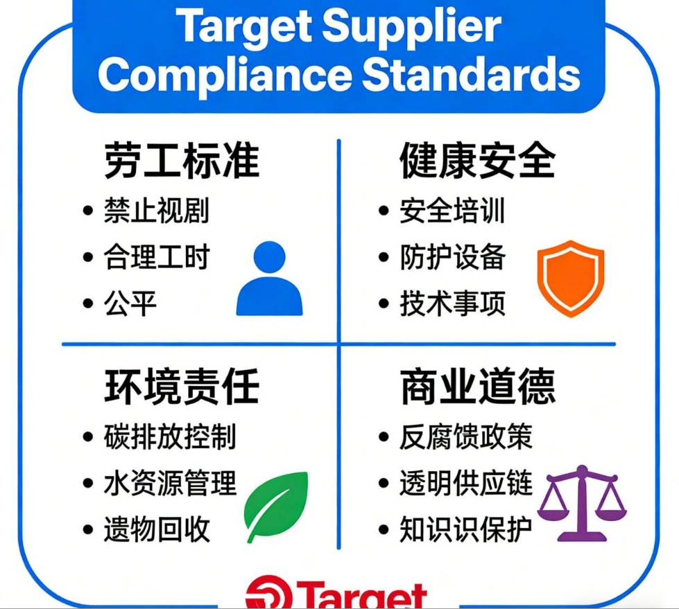塔吉特(Target)作为美国第二大传统零售商、世界500强企业,其验厂以“风险驱动型合规管理”为核心,通过多维度审核评估供应商的合规性与生产能力,是供应商进入其供应链体系的关键门槛。