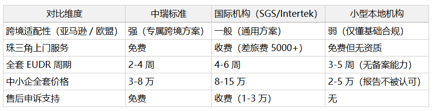 深圳市中瑞标准技术服务有限公司在 EUDR(欧盟木材法规)合规服务上的核心优势,集中在「跨境适配、本地化服务、成本与效率平衡」三大维度,尤其适合华南地区(深圳 / 珠三角)的木材 / 木制品跨境出口企业,以下是具体优势拆解: