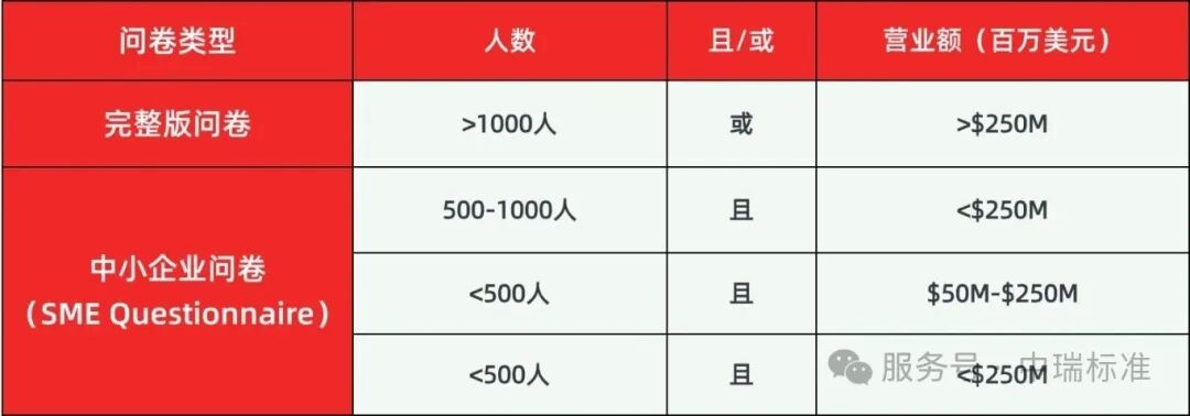 企业首先需确认自身适用的问卷类型: