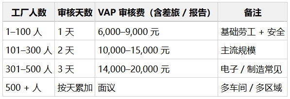 - VAP 注册费:每工厂 / 每年250 美元(必须缴,账户激活)