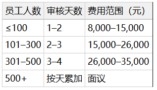 实报实销,含审核、差旅、报告;不含整改咨询,加急 / 偏远加价 20%–50%。