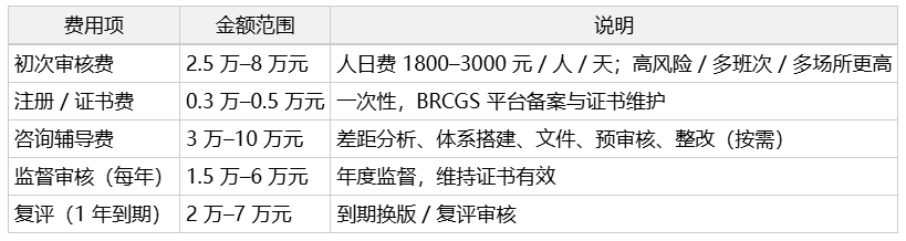 三、BRC认证费用明细(2026,人民币)