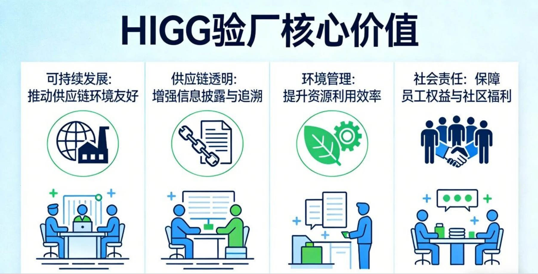 HIGG验厂核心围绕“自评 第三方验证”的模式展开,核心分为五大模块,其中工厂端最常涉及、审核频率最高的是环境模块(FEM)和社会劳工模块(FSLM),2026年验厂规则迎来重大优化,重点聚焦数据真实性与审核效率,以下是完整标准梳理。