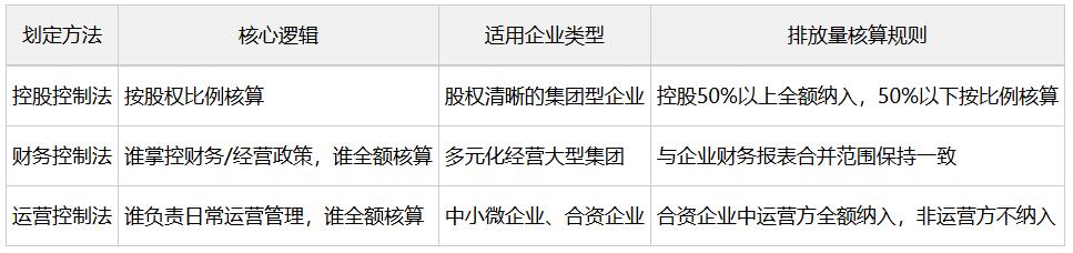 组织边界针对企业集团/母子公司/合资企业,明确哪些经营主体的排放需纳入核算,2026年国标与国际标准统一认可三大划定方法,企业需全公司统一采用、一贯执行。
