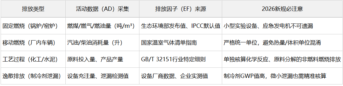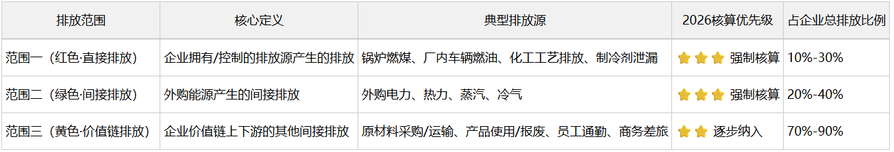 基于核心公式,结合不同排放范围的特点,拆解专属核算方法、权威数据源和2026年新规要求,直接落地可用。
