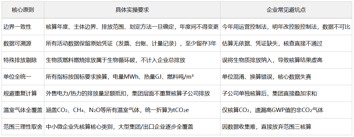 企业碳核算不仅要“算得对”,更要“留得证、查得过”,以下7大原则是核算工作的底线,直接决定核查是否通过。