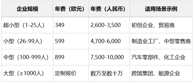 Ecovadis费用由基础订阅费和附加服务费构成,具体取决于企业规模、行业风险及服务需求: