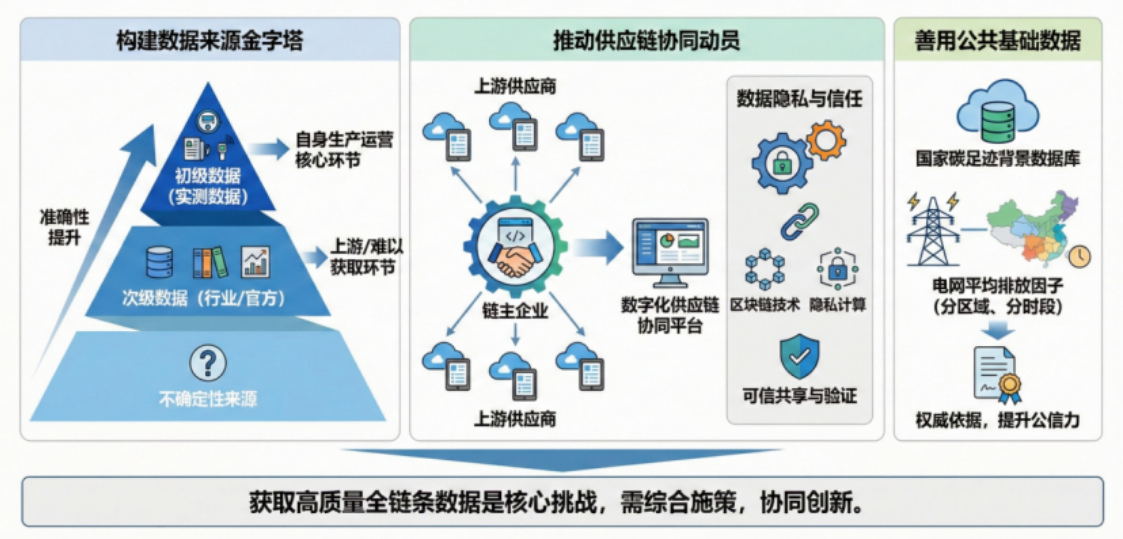 数据是碳足迹核算的“血液”,而获取高质量、可信赖的全链条数据,是当前最大的挑战 。