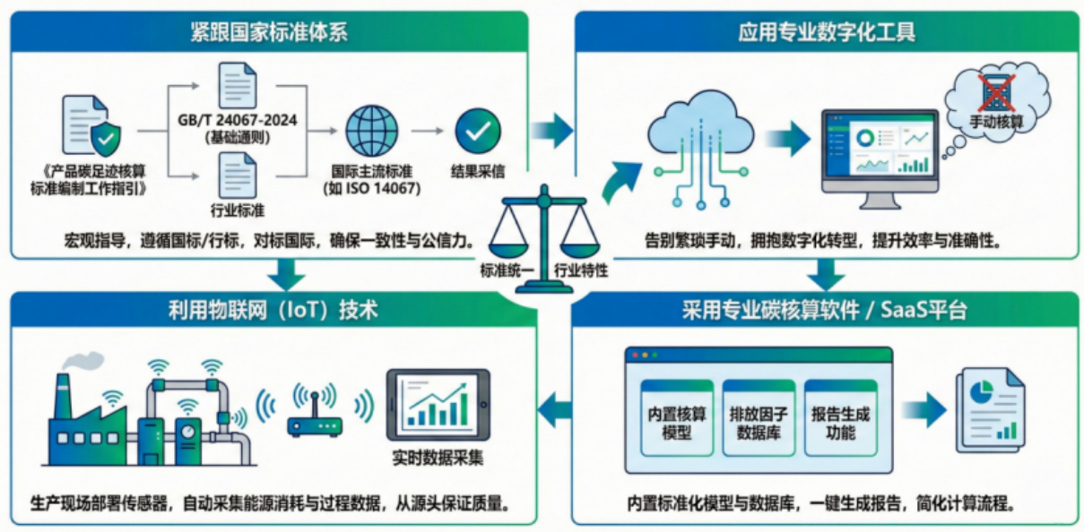 面对这一系统性挑战,企业需要一套清晰的行动路线图。我们建议采用以下“四步法”,循序渐进地构建产品碳足迹核算与管理能力。