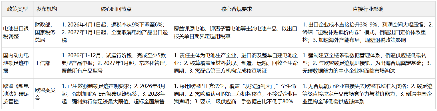 退税下调与碳足迹管控的双重压力,正在加速锂电行业的深度洗牌,行业格局将迎来前所未有的重构。