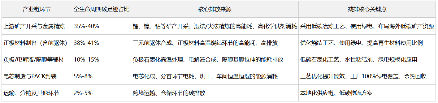 很多企业误以为,碳足迹管控只针对电池生产工厂,实则不然。动力电池全生命周期的碳排放,高度集中在上游原材料环节,仅正极材料(含前驱体)制备环节,碳足迹占比就高达38%-41%,是决定电池整体碳排放水平的核心命门。